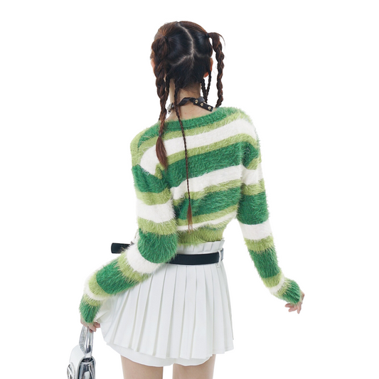 Cardigan BLUREMO Automne-Hiver à Rayures en Fourrure
